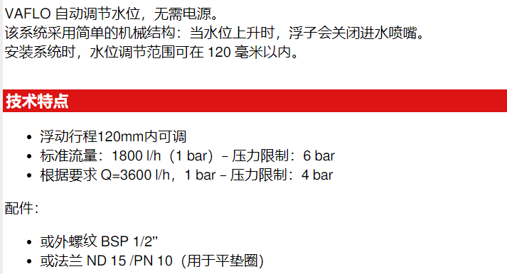 BAMO 带截止阀的液位控制器VAFLO系列